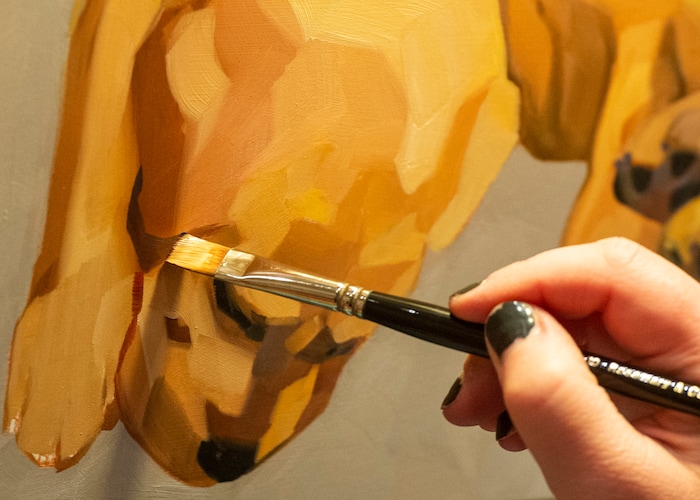 She estimates that about 70 paintings a year are commissions from dog owners. “Short-haired animals are the easiest,” Harper said. “You can see their form. When it’s really shaggy — that’s hard!”