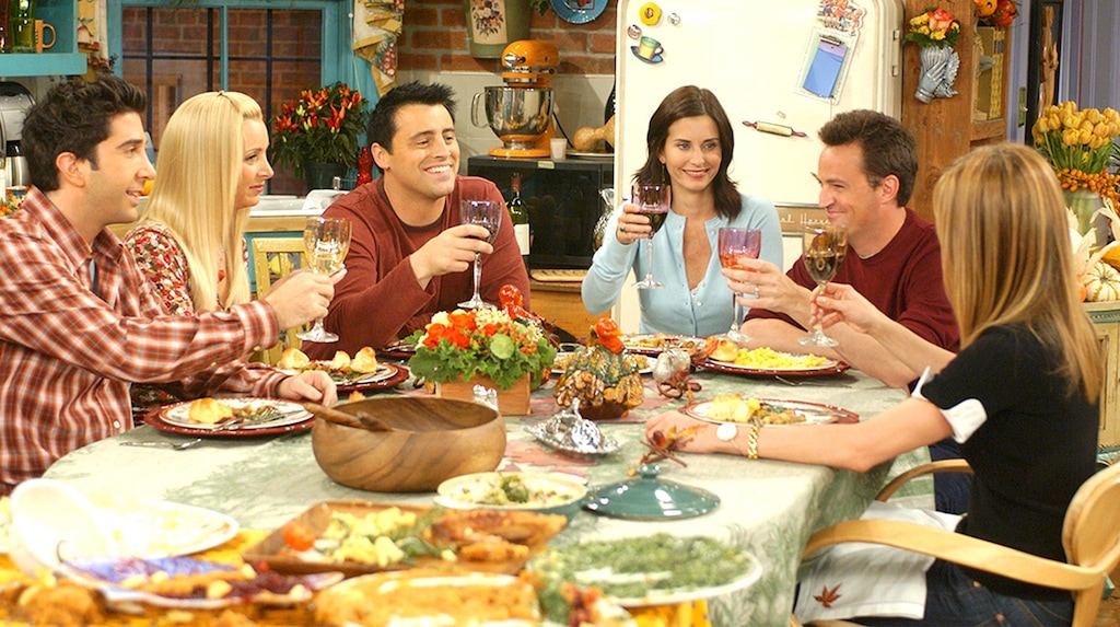 The first Friendsgiving was Nov. 17, 1994: “Friends” Season 1, Episode 9 — “The One Where Underdog Gets Away.” Sure, the definition of Friendsgiving is when you celebrate Thanksgiving with friends instead of family. But that’s exactly what Chandler (Matthew Perry), Joey (Matt LeBlanc), Monica (Courteney Cox), Phoebe (Lisa Kudrow), Rachel (Jennifer Aniston) and Ross (David Schwimmer) did for nine out of 10 seasons. And they were, to no small degree, an inspiration for a generation … now generations.
