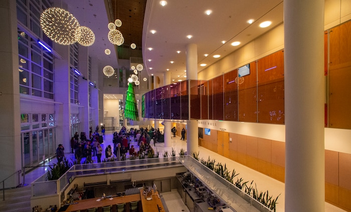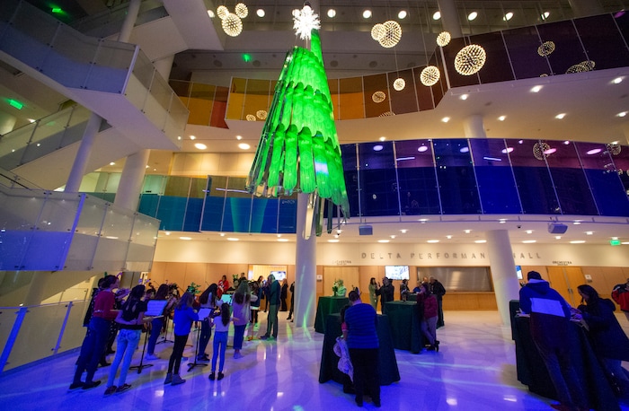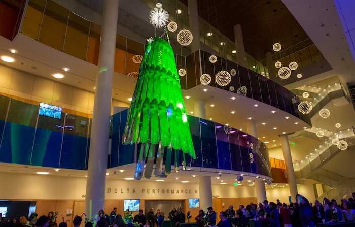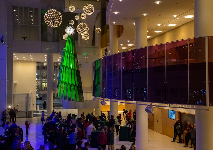 All of that is wrapped up in the art installation that Utah designers Rob and Shelley Beishline unveiled this week in the lobby of the Eccles, at 131 S. Main St. in downtown Salt Lake City. It will remain there through the holiday season, visible to concert attendees and passersby touring the lights from Temple Square and Gallivan Center.