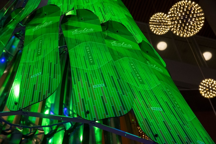 The holiday tree is a newer downtown tradition, launched at the Eccles in 2018. The Beishlines — who have run their studio, Tooza Designs, for some 20 years — have been working on this year’s tree since April.