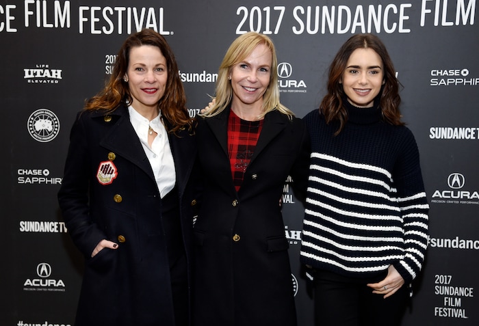 (Chris Pizzello | Invision/AP) Lili Taylor, left, seen here with filmmaker Marti Noxon, center, and actor Lily Collins at the 2017 Sundance Film Festival premiere of "To the Bone," will appear at the 2020 Sundance Film Festival to promote the movie "The Evening Hour."