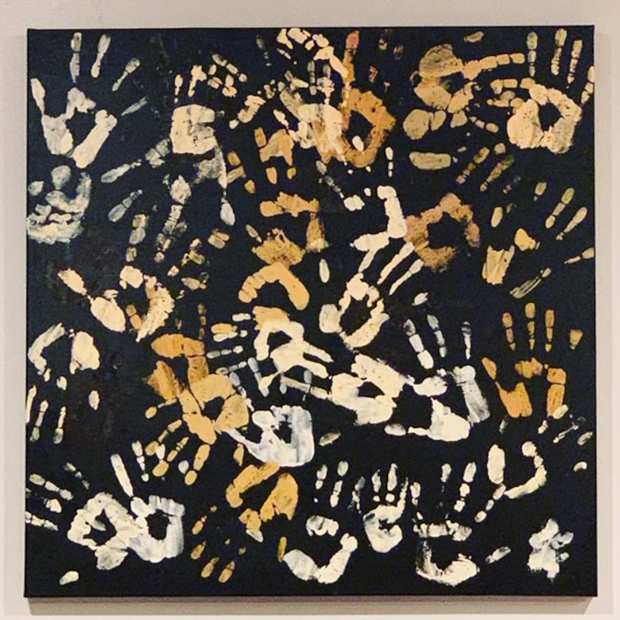Volz painted their palms in different shades of browns, tans and creams. Protesters left the paint on their hands as they continued marching last Friday. Some kids added their handprints, too, she said.