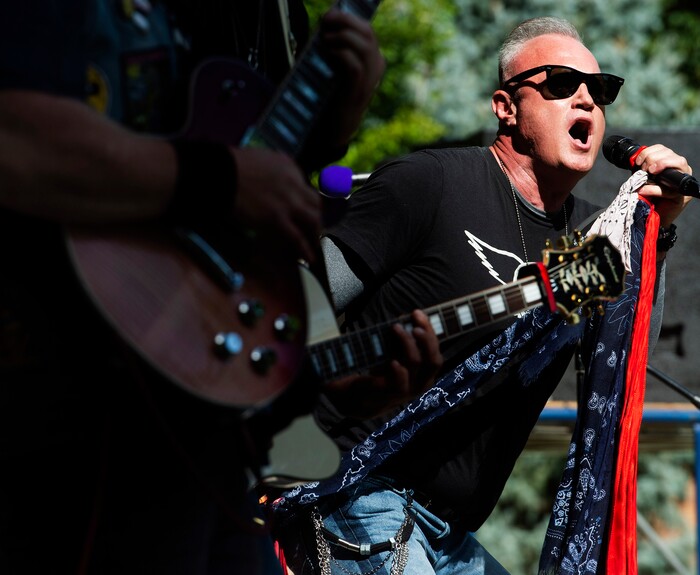 (Rick Egan | The Salt Lake Tribune) Tracy Cowdell sings for the band Denovo, during the annual Geezerfest 2020 in Orem on Friday, Aug. 14, 2020.