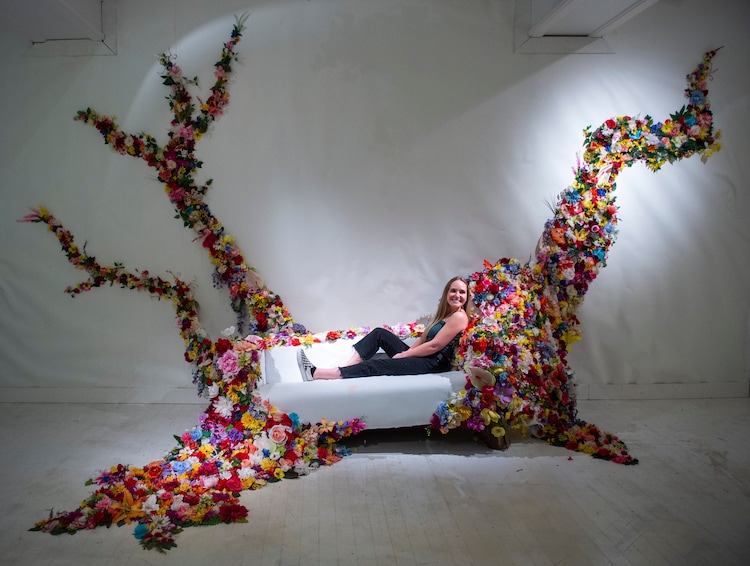 (Rick Egan | The Salt Lake Tribune) Megan Donovan poses for photo in the "Flower Room" by Katia Racine (lead artist), Andrea Racine, and Cami Chatterton, at Dreamscapes, at the Gateway, on Friday, Feb. 5, 2021.
