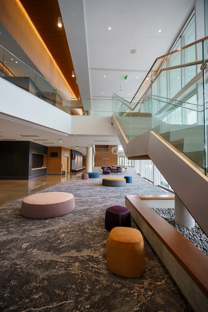 The lobby includes a gallery wall, which will at first feature work from the county’s public art collection, said Jessica Liebrecht, the venue’s manager. The space may open up for juried exhibitions, community arts groups and individual artists, she said. And, according to Castillo, the ceiling of the lobby has rigging that could be used by aerial artists.
