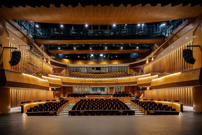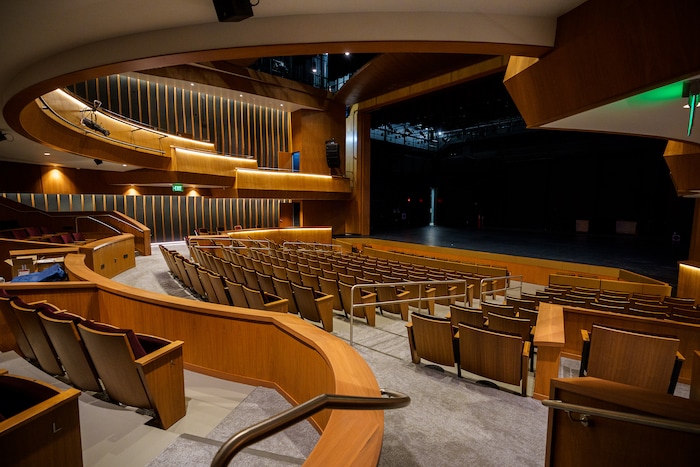 The sides of the proscenium can roll out to narrow the stage’s “fourth wall” — a useful feature for dance companies who want more space in the wings, he said.