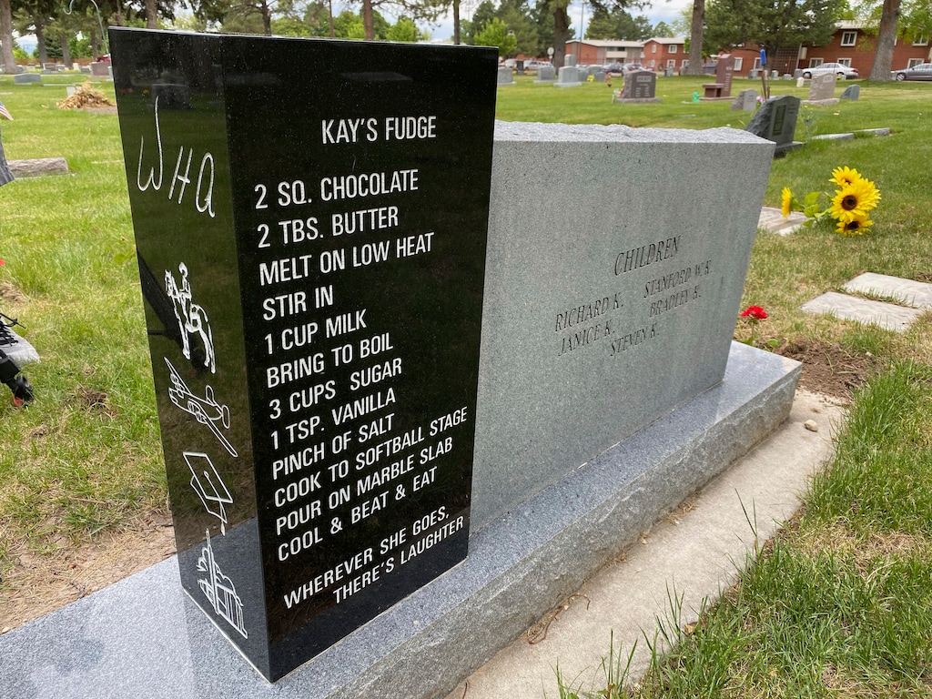 Johnson says when the headstone was first made it included a “typo” calling for one tablespoon of vanilla, which can result in “runny fudge.”