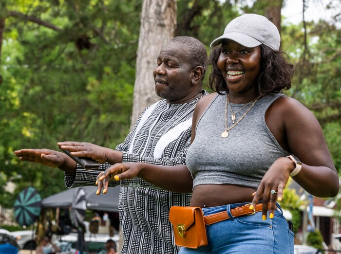 (Rick Egan | The Salt Lake Tribune) Valentine Mukendente and Louisa Stark dance to African music at the 5th annual African Festival at Liberty Park, on Saturday, July 31, 2021.