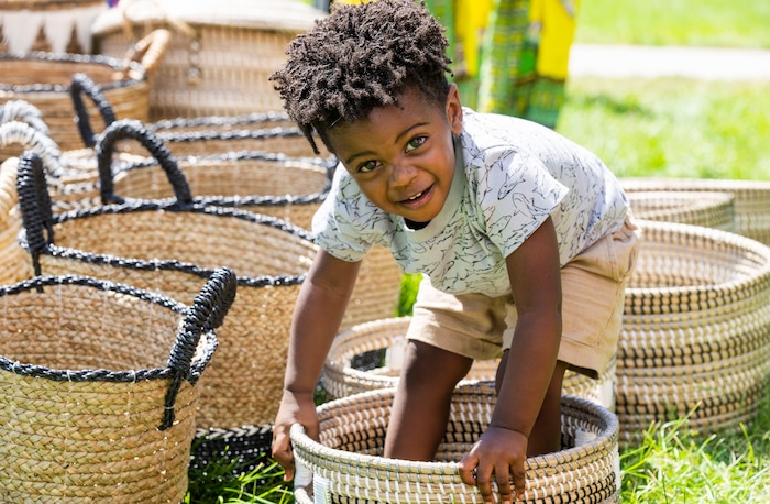 (Rick Egan | The Salt Lake Tribune) Samuel Norris, checks out the baskets at the 5th annual African Festival at Liberty Park, on Saturday, July 31, 2021.