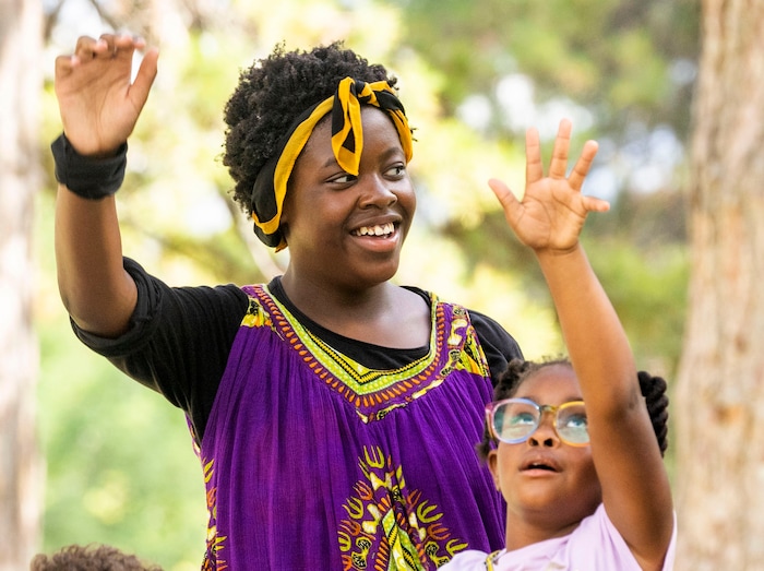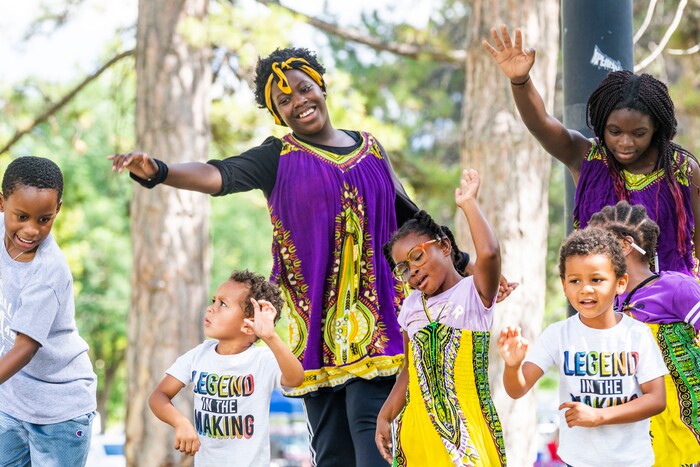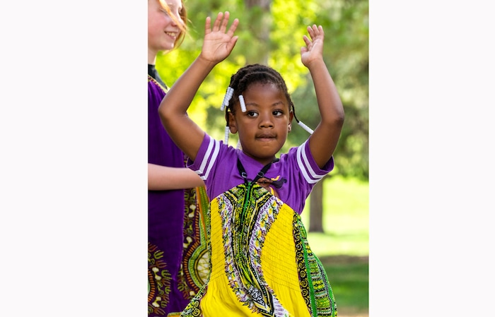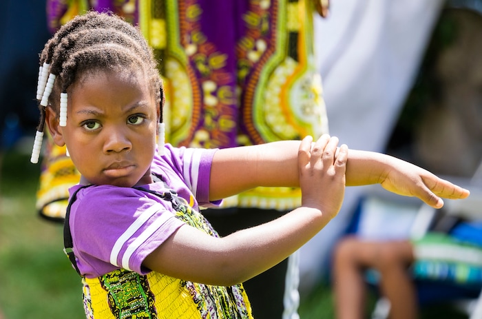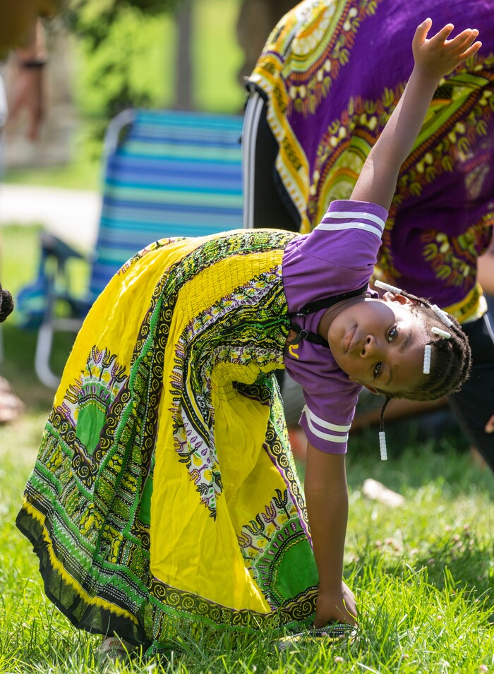 (Rick Egan | The Salt Lake Tribune) Audrey-Vaughan 5, dances with the Wa-Toto dancers at the 5th annual African Festival at Liberty Park, on Saturday, July 31, 2021.