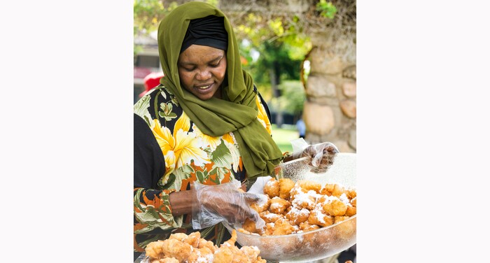 (Rick Egan | The Salt Lake Tribune) Kaltum Mohamed serves African food, at the 5th annual African Festival at Liberty Park, on Saturday, July 31, 2021.