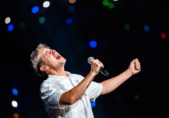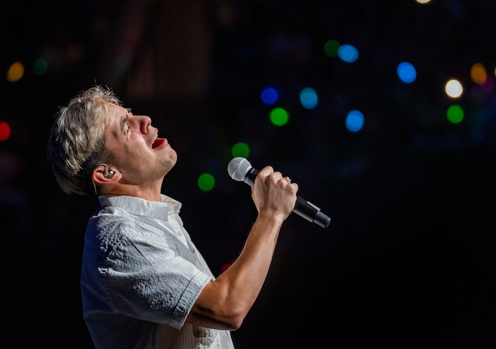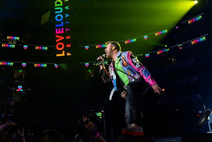 (Rick Egan | The Salt Lake Tribune) Tyler Glenn sings for Neon trees at the LoveLoud Festival at Vivint Arena, on Saturday, May 14, 2022.