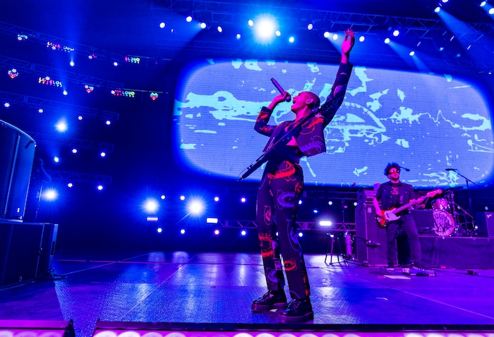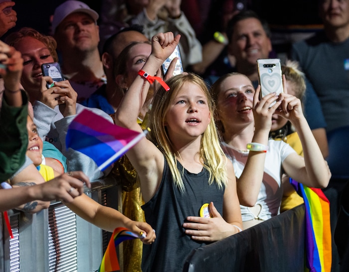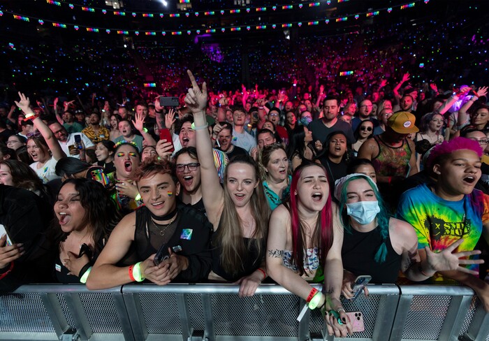 During Reynolds’ set Saturday, fans embraced each other and flew pride flags in every color. Reynolds — who founded the festival in 2017 as a celebration and safe haven for LGBTQ+ youth and teens — wasn’t shy about joining the crowd, even climbing into one section of the arena to sing with fans.