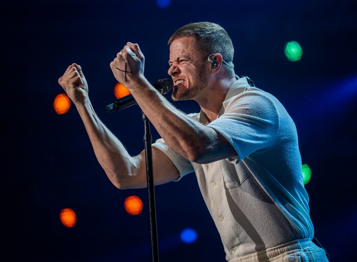 Dan Reynolds led off his set for this year’s LoveLoud Festival with a hit from his band, Imagine Dragons, “It’s Time” — and the crowd rose to its feet, singing the loudest at the line “I’m never changing who I am.”