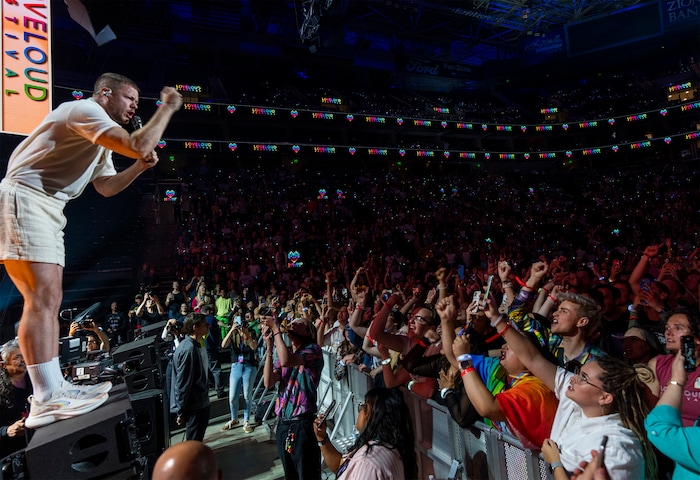 (Rick Egan | The Salt Lake Tribune) Fans sing along as Dan Reynolds performs at the LoveLoud Festival at Vivint Arena, on Saturday, May 14, 2022.