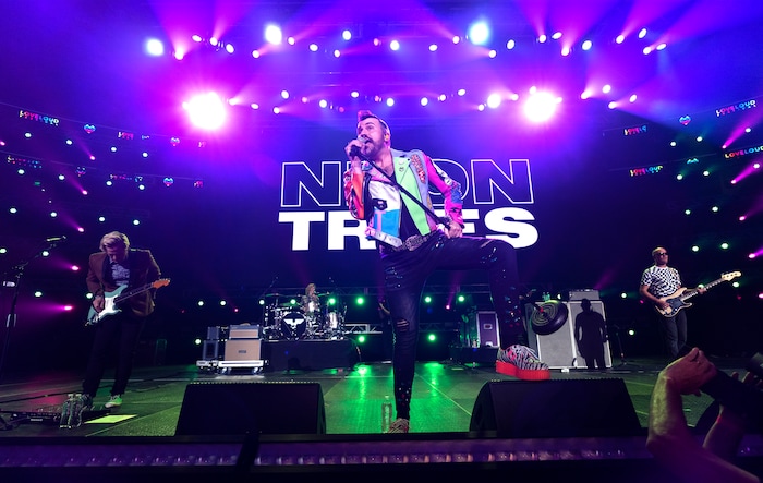 (Rick Egan | The Salt Lake Tribune) Neon trees perform at the LoveLoud Festival at Vivint Arena, on Saturday, May 14, 2022.