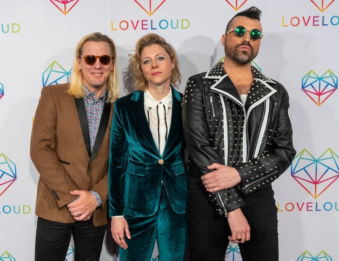 (Rick Egan | The Salt Lake Tribune) Neon Trees Brandon Campbell, Elaine Bradley and Tyler Glenn, on the red carpet for the LoveLoud Festival, on Saturday, May 14, 2022.