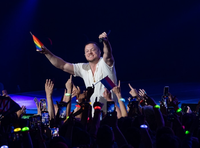 (Rick Egan | The Salt Lake Tribune) Dan Reynolds performs at the LoveLoud Festival at Vivint Arena, on Saturday, May 14, 2022.