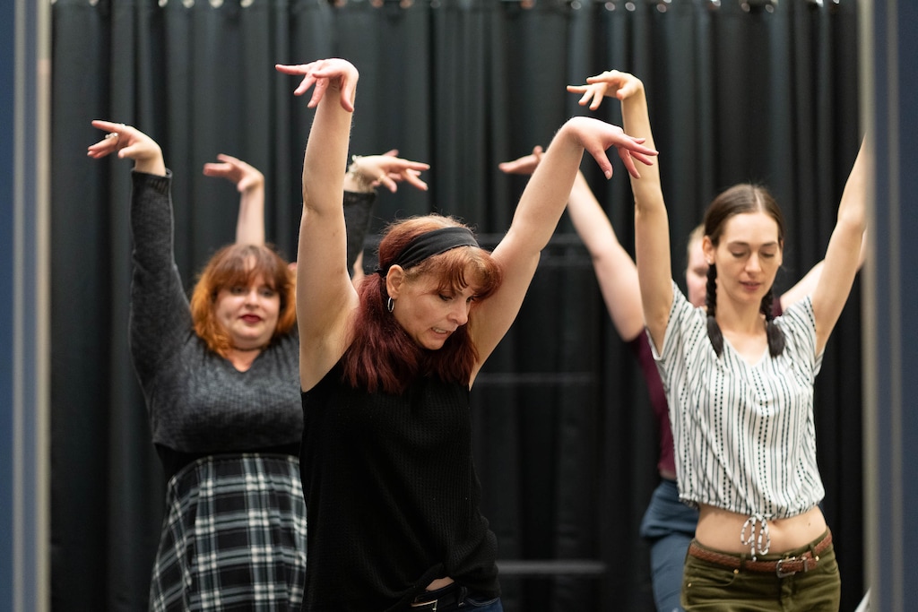(Francisco Kjolseth | The Salt Lake Tribune) Preparing for the 2022 Great Salt Lake Fringe Festival, Carly Welch, Jenn Niedfeldt, Mandi Titcomb and Lisa Nicole Thurman, from left, rehearse a musical number during the production of "Monologues from a Movement," featured around women’s true #MeToo stories, at The Box at the Gateway on Wednesday, July 20, 2022.
