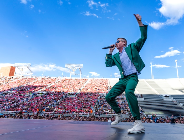 (Rick Egan | The Salt Lake Tribune) Macklemore performs at Rice-Eccles Stadium, on Friday, Aug. 5, 2022.