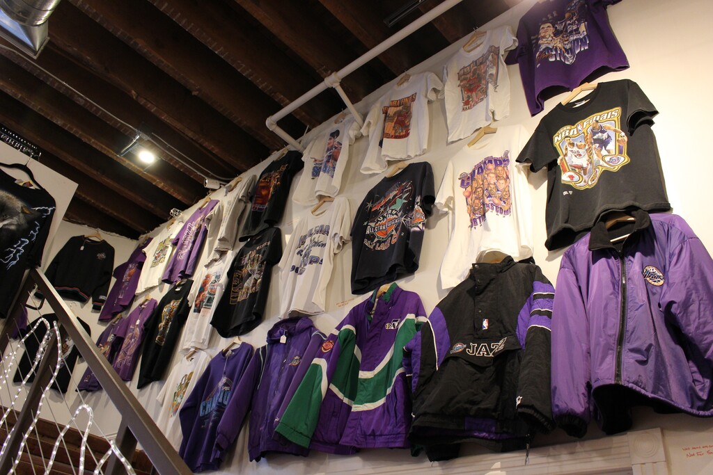 One wall was also covered with purple Utah Jazz shirts and hoodies, several from the fateful 1998 NBA Finals.