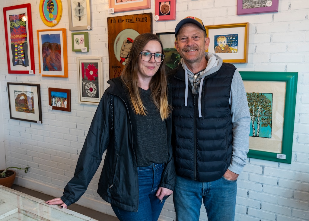 (Rick Egan | The Salt Lake Tribune) Leia Bell and Phil Sherburne are celebrating 15 years in their print and frame shop, Thursday, April 13, 2023.