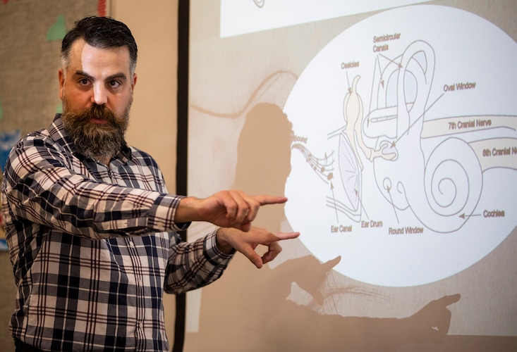 Throughout the two-hour class, McAllister and student Toby O’Hara shared insights to deaf culture. They talked about cochlear implants, which can be controversial within the deaf community.