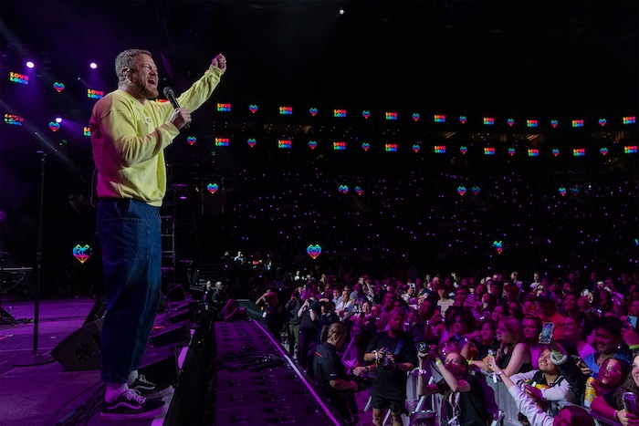 In the crowd, people danced, embraced and sang along. Many attendees wore white LoveLoud shirts with rainbow lettering. On the back, they read, “Uniting the world through music since 2017.”