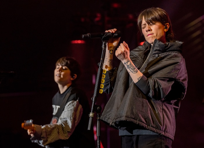 (Rick Egan | The Salt Lake Tribune) Tegan & Sara perform at Loveloud at the Delta Center, on Friday, Nov. 3, 2023.