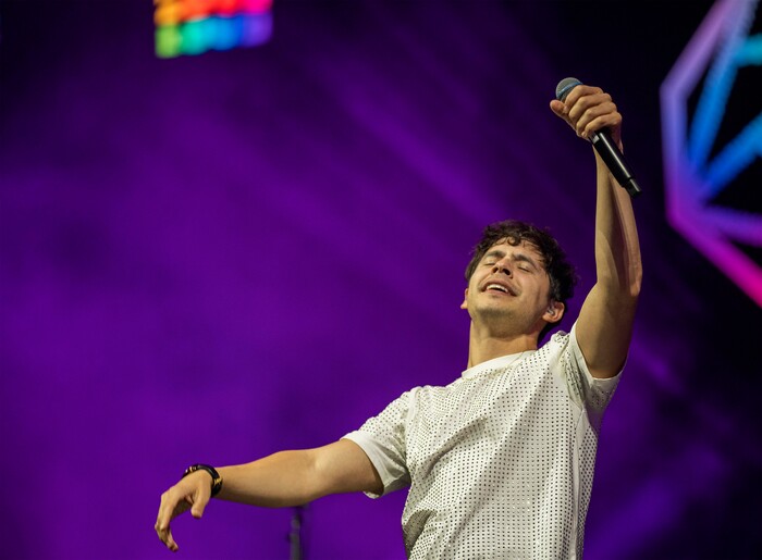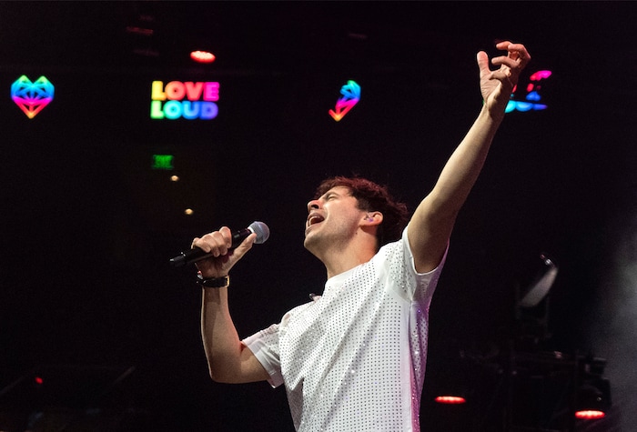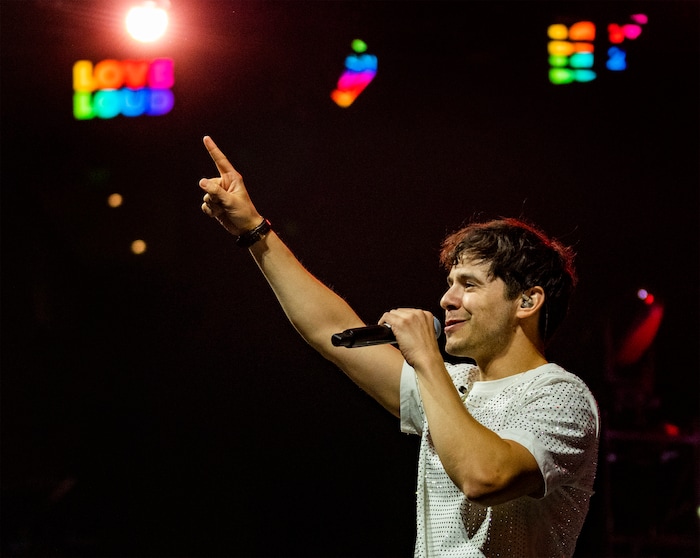 That’s what artists like Archuleta did. He took to the stage in a sparkly white shirt and dazzled with high energy and killer vocals — along with slick dance moves. He pointed out his family in the crowd, especially his mother, who was decked in pride gear. He performed both high energy and softer songs — like “Afraid to Love” and “Up.”