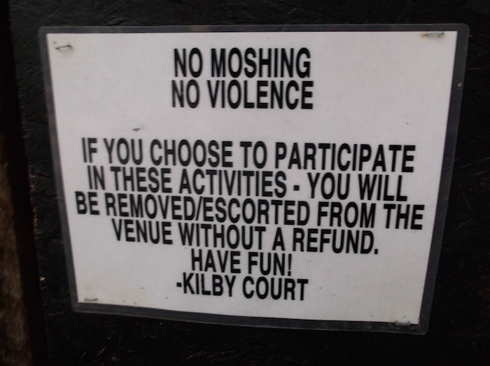 For those 25 years, music lovers have followed the sandwich-board sign that reads “Welcome to Kilby Court,” after walking down the long alley that leads to the venue. At the end, they find a dark, intimate, glorious garage shack with chipped and peeling red paint, where every inch of free space on its walls is plastered with stickers and colorful graffiti.