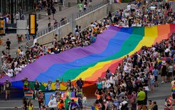 (Francisco Kjolseth | The Salt Lake Tribune) The large rainbow flag that takes up the rear of the Utah Pride Parade is carried in Salt Lake City on Sunday, June 4, 2023.