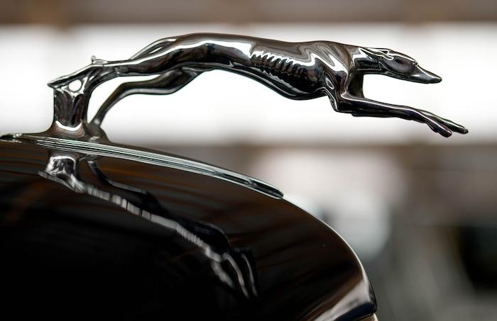 (Francisco Kjolseth | The Salt Lake Tribune) The hood ornament on a 1939 Lincoln series K V-12, 4-door sedan is pictured at the Richard W. Erickson Foundation Antique & Classic Power Museum in Wallsburg, Utah, on Tuesday, Aug. 6, 2024.