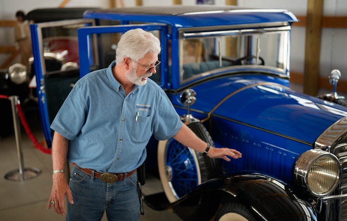 (Francisco Kjolseth | The Salt Lake Tribune) Russell Baker, curator and chairman of the Richard W. Erickson Foundation Antique & Classic Power Museum in Wallsburg, Utah, gives a tour of one of the many buildings filled with classic cars on Tuesday, Aug. 6, 2024.