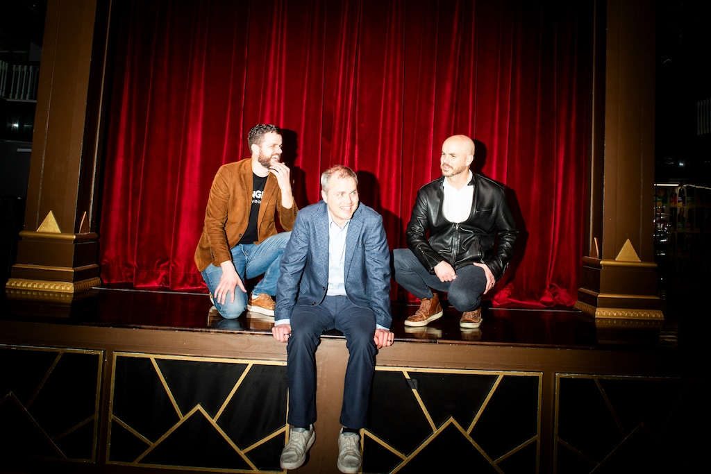 (Russel Daniels | The New York Times) Jeffery Harmon, center, and Jordan Harmon with a client at Angel Studios in Provo on March 31, 2025. The company behind “Sound of Freedom” follows an unusual strategy that relies on an army of subscribers to its streaming platform.