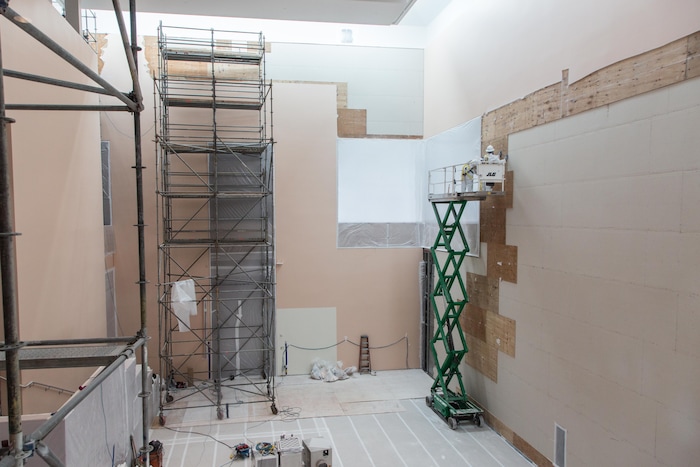 ( | courtesy Utah Museum of Fine Arts) Construction workers in the Utah Museum of Fine Arts' Great Hall in March 2016, near the beginning of the museum's closure for building upgrades and remodeling.