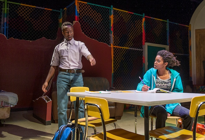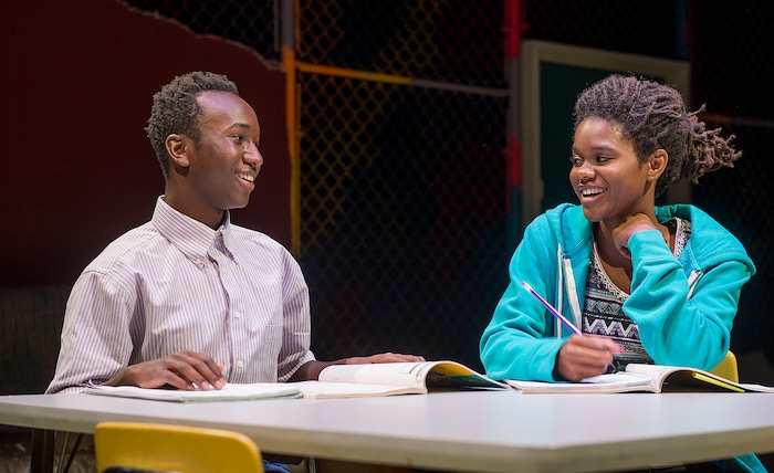 The teenagers are double-cast and have limited performing experience. Darby-Duffin’s years as a schoolteacher helped them find their voices. On opening night, Clinton Bradt’s sweet-natured, talkative Tino and Jenna Newbold’s savvier, outspoken Deja were an appealing combination. Devin Losser and Kiara Riddle play the roles at other performances.