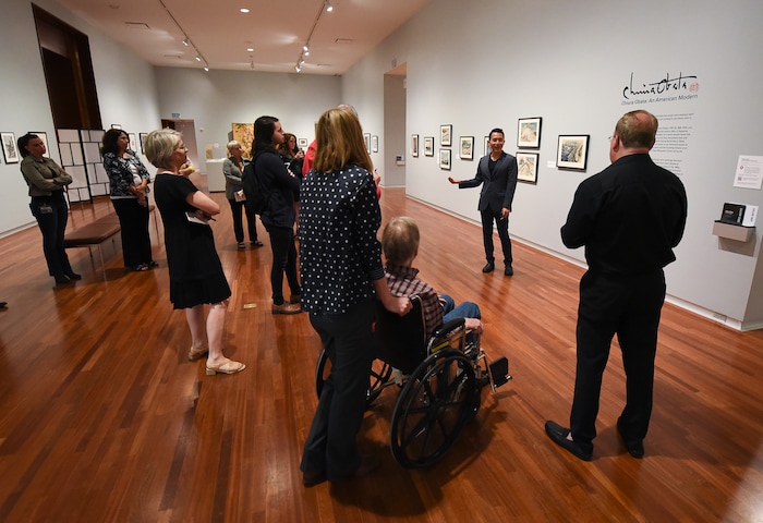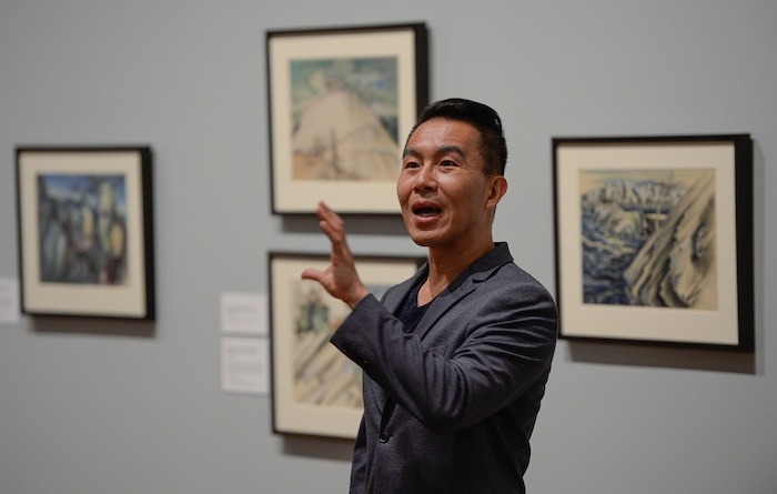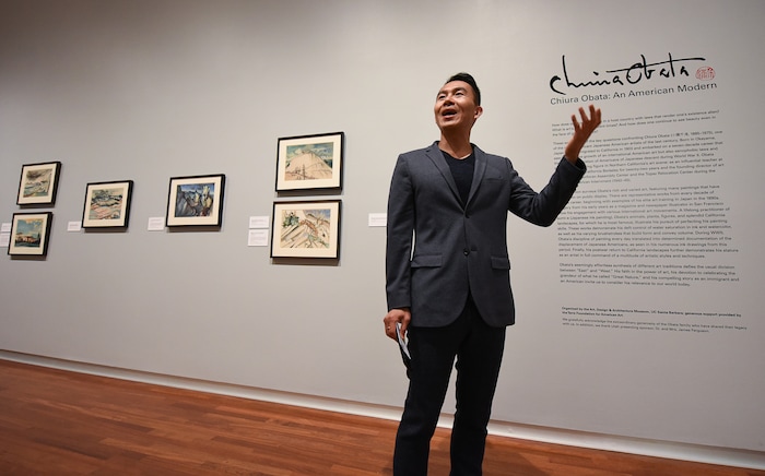 (Francisco Kjolseth | The Salt Lake Tribune) Curator ShiPu Wang, introduces a new exhibit at the Utah Museum of Fine Art, "Chiura Obata: An American Modern," major touring retrospective of Japanese-American artist (1885-1975), whose work captured Western landscapes and his time at the Topaz War Relocation Center (internment camp) during World War II. Exhibit opens Friday, May 25, 2018.