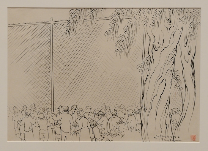 The images from his internment period “are very short, agitated, emotional, unsettled,” Wang said. “If you think about his physical being at the time, sitting on the train, on the bus, while still painting, which is a remarkable thing — that reflects his experience.”