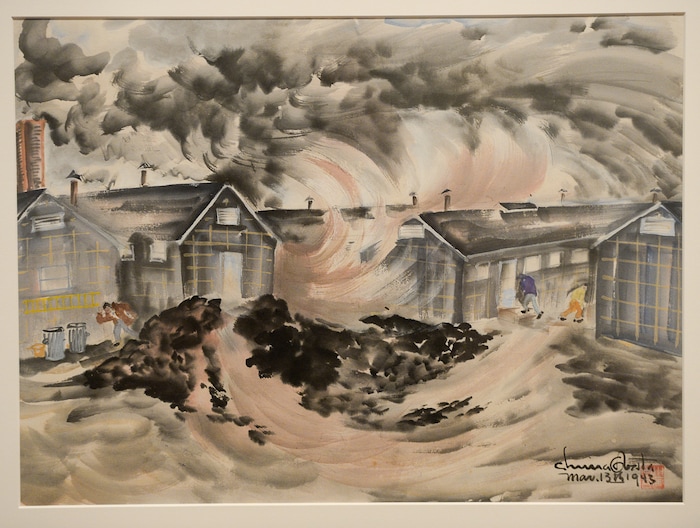 (Chiura Obata | courtesy Utah Museum of Fine Arts) "Dust Storm, Topaz," a watercolor-on-paper created March 13, 1943, by Japanese-American artist Chiura Obata during his time at the Topaz internment camp in Utah. Obata's work will be shown in a major touring retrospective, May 25-Sept. 8 at the Utah Museum of Fine Arts.