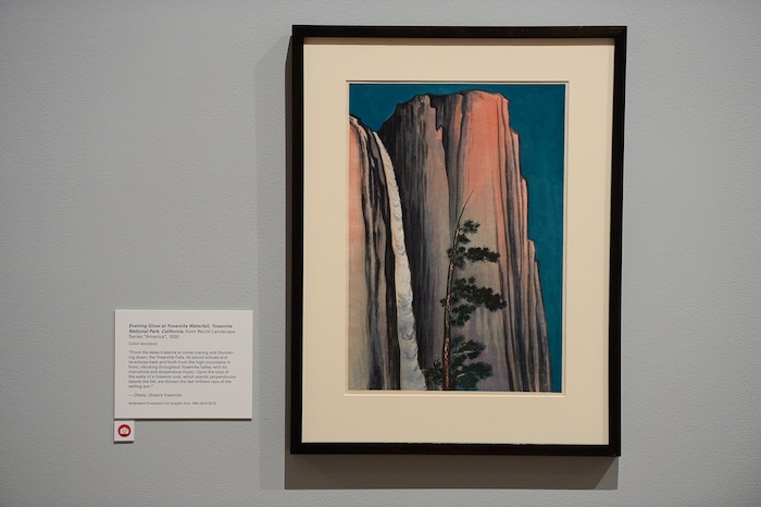 In the 1920s, Obata painted landscapes around California, most famously of Yosemite National Park. His Yosemite images were so striking, and so different from traditional landscape painting, that one jaded art critic of the era said “he fell in love with California landscape again,” according to Luke Kelly, a curator at UMFA who worked with Wang in displaying the exhibition.