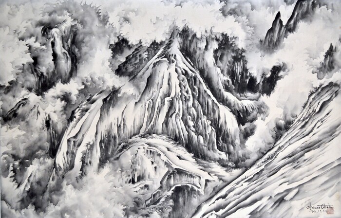 (Chiura Obata | courtesy Utah Museum of Fine Arts) "A Snow Storm Nearing Yosemite Park Government Center," a 1939 sumi-on-silk work by Japanese-American artist Chiura Obata. Obata's work will be shown in a major touring retrospective, May 25-Sept. 8 at the Utah Museum of Fine Arts.