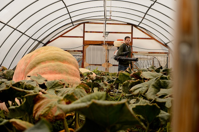 (Trent Nelson | The Salt Lake Tribune) Matt McConkie has grown a nearly 2,000 pound pumpkin.