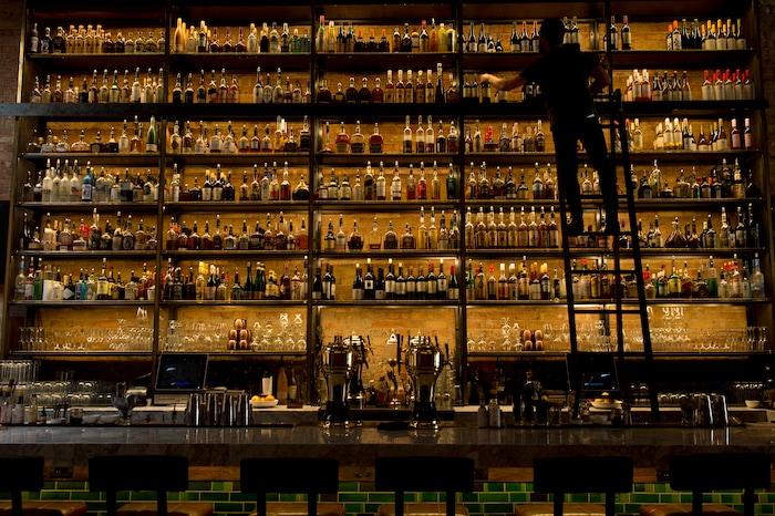 White Horse bills itself as a modern American brasserie — an apt description given its focus on snackable dishes. But it is first and foremost a high-end bar, with a backlit wall of bottles at the center.