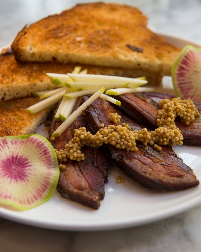 Far from the childhood favorite, the PB&J ($10) is sure to become an adult addiction with thick slices of seared Berkshire pork belly served with bourbon maple onion jam and fresh apple matchstick slices alongside crusty brioche.
