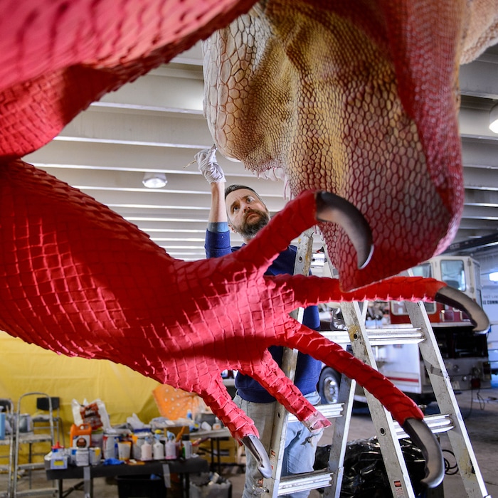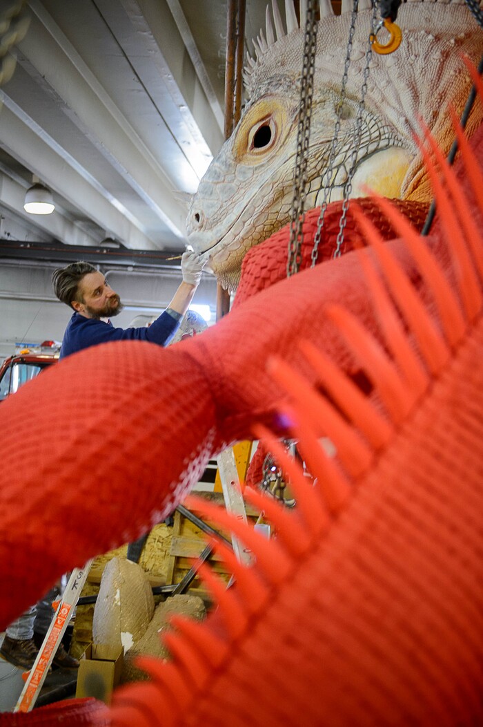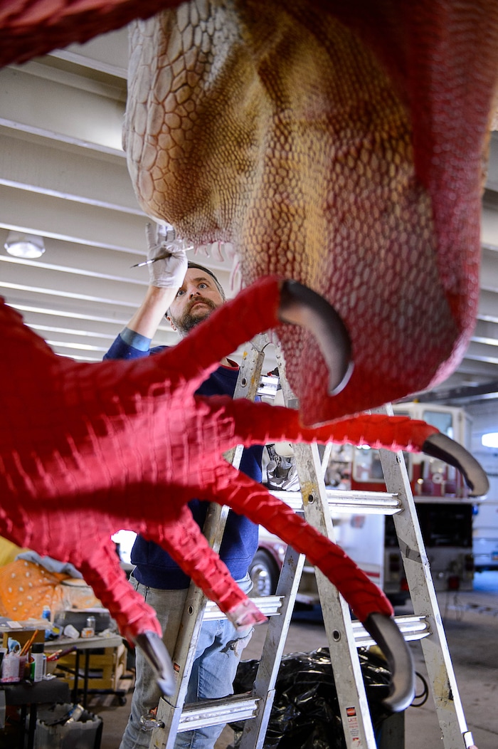 Coker said he leased the downtown warehouse from Salt Lake City because it was the only place he could find with doors tall enough to ensure the iguana could be rolled out fully assembled.