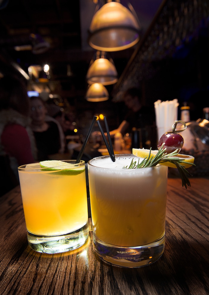 (Scott Sommerdorf | The Salt Lake Tribune) The "Smoky Llama" drink, left, and the "Shark Bait" at Purgatory Bar.