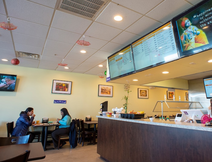 Tangy, cardamom-spiked mango lassi ($3.99), rose milk and filter coffee ($2.99) are traditional beverages that lend an authentic Indian café vibe to the restaurant.