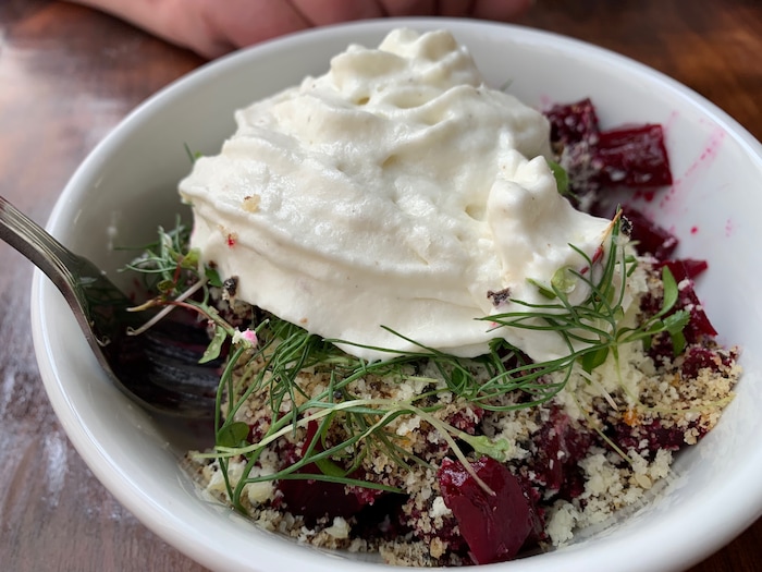 $9 • I never really thought I would come around to beets, but SLC Eatery completely changed my mind with its beet “hachees.” I loved every bite of the chopped beet salad topped with a black garlic crumble, Comte cheese, fresh herbs and onion whipped cream. On their own, the beets are beautifully cooked, but with the other ingredients, they are transformed into a beautifully balanced, complex dish layered with earthy, sweet, salty and savory notes. The real star here is the airy whipped cream, which tastes as if it’s been caramelized — tangy yet sweet. Although the salad has been off the menu since summer, I’m hoping SLC Eatery will bring it back in spring. — LBT