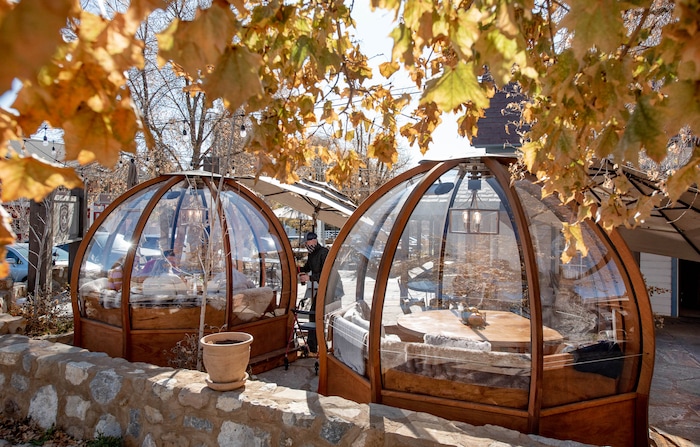 Initially designed for those seeking a socially distant way to dine during the pandemic, the spheres quickly turned into a dining “experience,” said Emily Jenkins, especially after a recent snowstorm. Being warm and cozy inside while tiny flakes were falling outside “was magical,” she said. “It’s like being in an inside-out snow globe.”